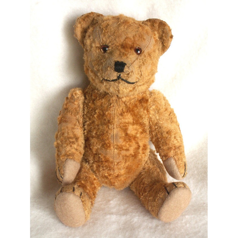 FRED is showcased by I Lees Bell Fred is a 1950 Art silk bear who is 14 ins tall. He has replaced felt pads, is wood wool stuffed and in good condition. Is he Polish? Description Date 1950 Make Button Label Fabric Art Silk Size 14 ins Eyes Glass Features J