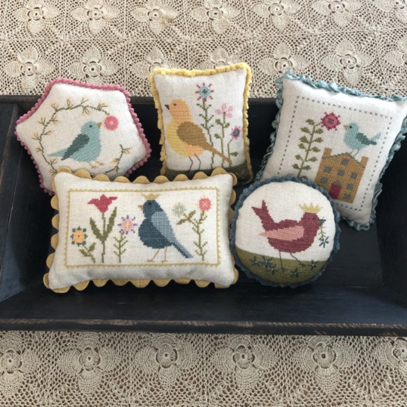 PAPER PATTERN - THIS WILL BE MAILED TO YOU Pattern Name: A Little Birdie Told Me Designer: Under The Garden Moon In the Leafy Treetops- Stitch Count: 57 x 56 Top of the Morning- Stitch Count: 55 x 58 King of the Flower Garden- Stitch Count: 92 x 47 Pretty