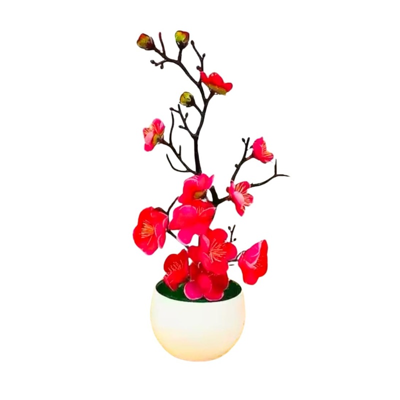 Bring somebody luck and good fortune to your house with this mini plum tree, and its vibrant red pink flowers. Material : plastic Size : H 30cm