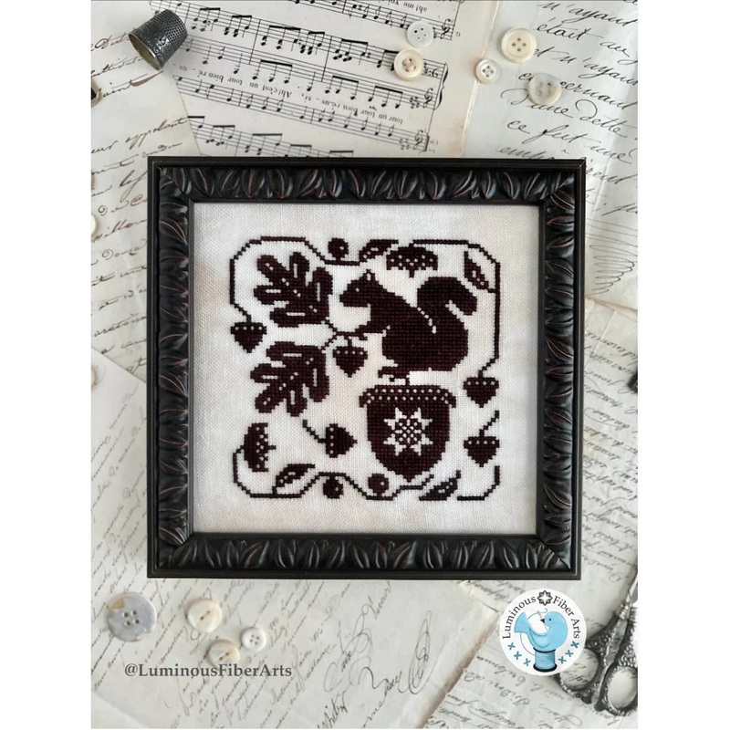 PAPER PATTERN - THIS WILL BE MAILED TO YOUPattern Name: Autumn AcornsDesigner: Luminous Fiber ArtsStitch Count: 70 x 69Stitched on: 32 Count Toasted Coconut linen by Forbidden Fiber Co.Floss used: Classic Color Works