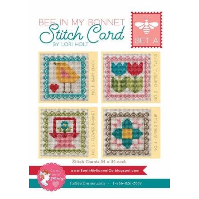 PAPER PATTERN - THIS WILL BE MAILED TO YOU Pattern Name: Bee in my Bonnet Stitch Cards Set A Designer: Lori Holt Stitch Count: 34 x 34 each
