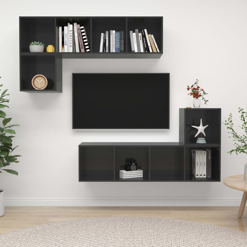 Berkfield 4 Piece TV Cabinet Set High Gloss Grey Engineered Wood