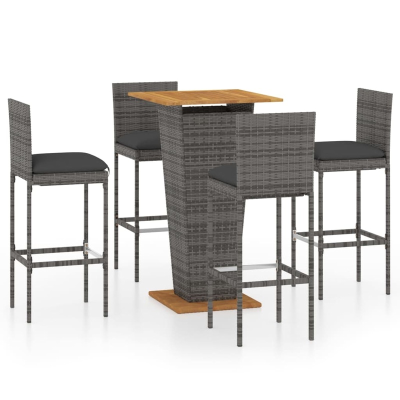Berkfield 5 Piece Garden Bar Set with Cushions Poly Rattan Grey