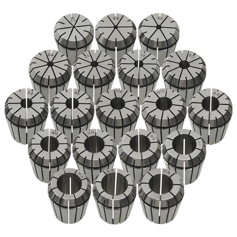 This 19 pcs ER32 collets are suitable for boring, milling, drilling, tapping, engraving, CNC, spindle machines and similar jobs. The set is with 2 mm to 20 mm griping range. These collets are made of high-quality steel, stable and practical in performance. It works with high precision, good elasticity and shock resistance. The set is built in self-release design and tools do not get stuck in the holder. Each collet is well packed in a separate protective container with a label. Also, each collet is marked with size, so its easy to identify them.