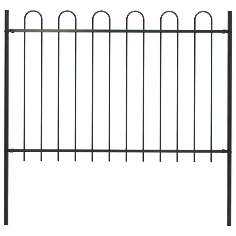Create an elegant fence around your garden, home, or walkway with our garden fence! Our decorative steel garden fence, consisting of 1 fence panel and 2 posts, has a total length of 1.7 metres. It will form a sturdy, safe and maintenance-free perimeter barrier for your garden, home, or business property. With vertical bars with hoop top and strong horizontal brace as reinforcement to the frame, our garden fence will provide a high degree of security. Manufactured from heavy-duty, powder-coated steel, the outdoor fence is very strong and thus stable, sturdy and durable. Thanks to the included mounting materials, the garden fence is easy to assemble. Note: You can buy more sets to make the fence as long as you like.