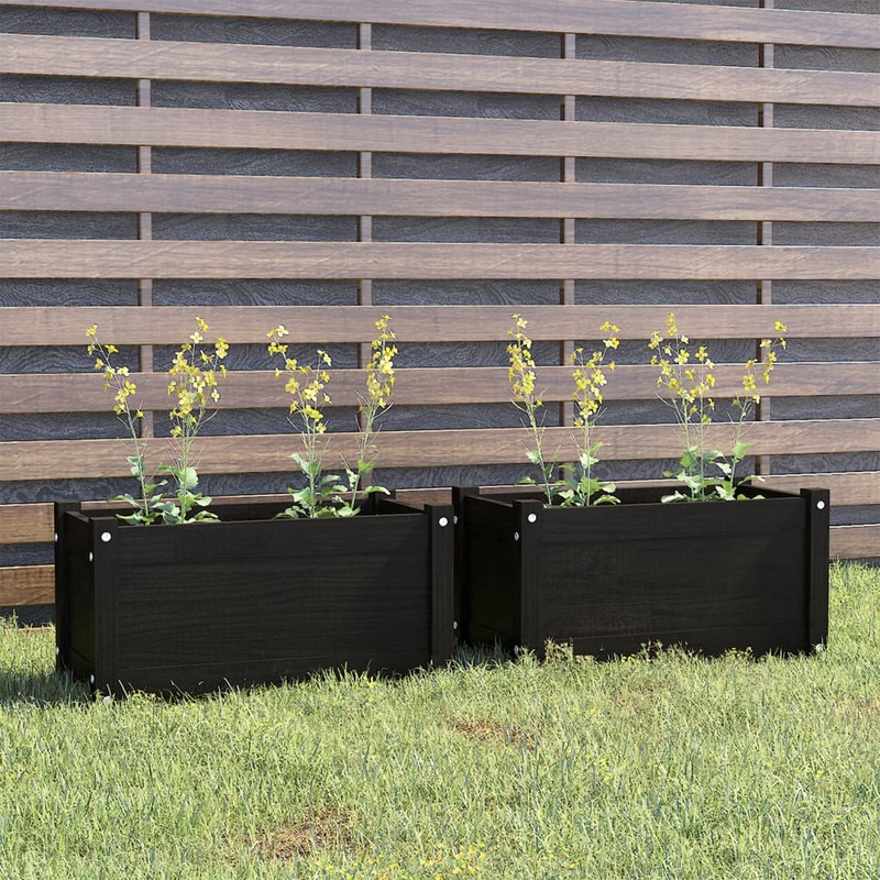 Berkfield Garden Planters 2 pcs Black 60x31x31 cm Solid Pinewood