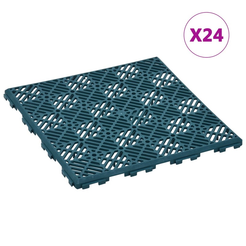 The garden tiles, made of sturdy plastic, are perfect for floors or walkways of your garden, garage, terrace, patio, etc. The anti-slip fine patterns will offer walking stability to your family and ensure a decorative function. And the floor tiles have good shock absorption and are durable for years of service. With the weatherproof tiles, your garden will own a modern, warm style. Thanks to the plug-in system, the tiles can be combined with one another easily and tightly to increase the covering area and to add the walking stability. Delivery includes 24 pcs of tiles, a total of approx. 2 m_. The flexible floor tiles can be used to decorate your garden or terrace with amazing effects.