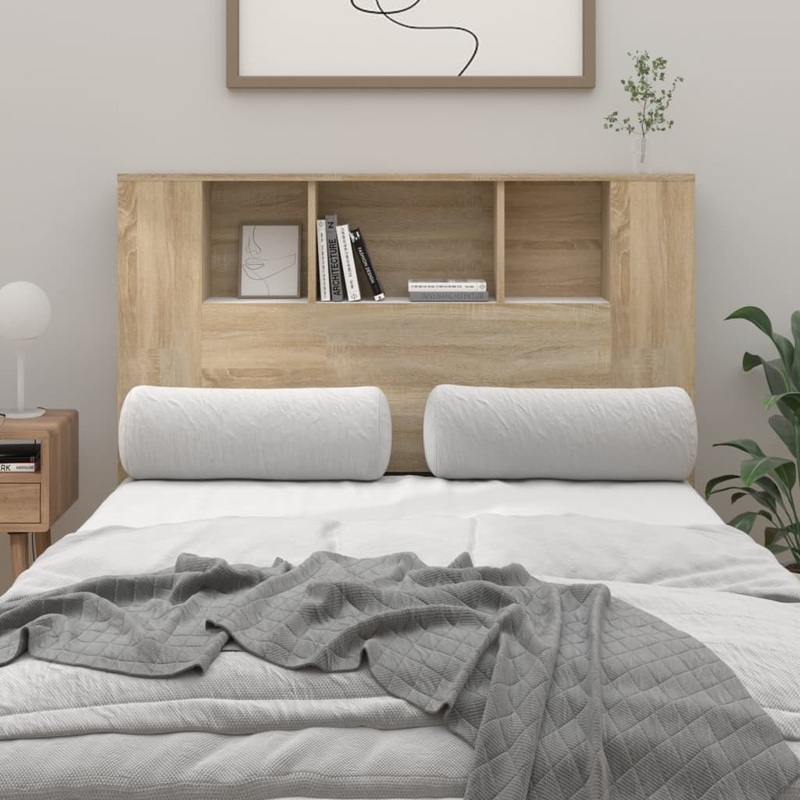 Berkfield Headboard Cabinet White and Sonoma Oak 120×18.5×104.5 cm