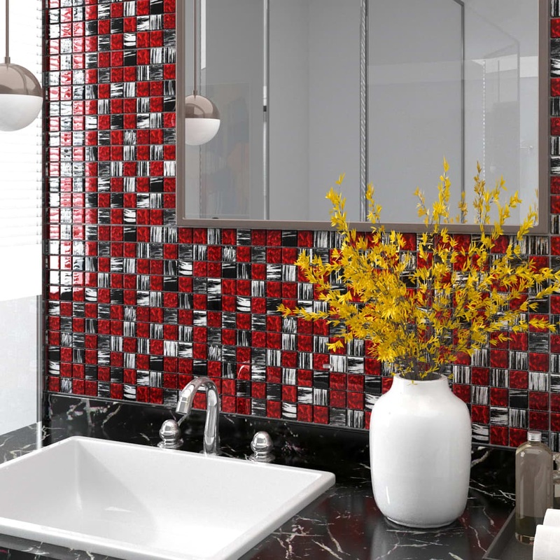 Berkfield Mosaic Tiles 11 pcs Black and Red 30×30 cm Glass