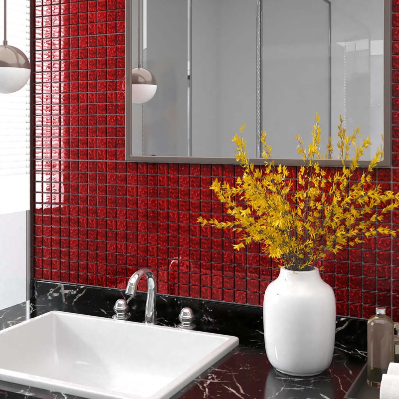 Berkfield Mosaic Tiles 22 pcs Red 30×30 cm Glass