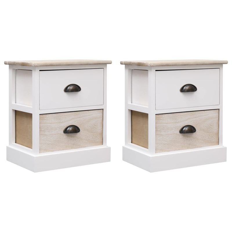 Berkfield Nightstands 2 pcs White and Natural 38x28x45 cm Paulownia Wood