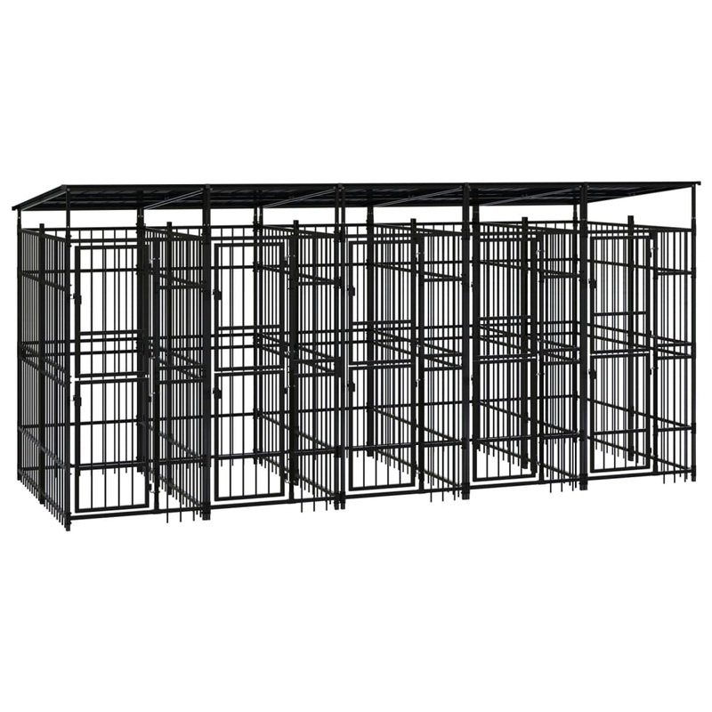 This versatile dog kennel features multiple uses: playing, exercising, training, or simply keeping your dog safe. It will be the perfect play paradise for your furry friends! This dog kennel provides ample exercise space. The walls of steel bars help prevent mischief and unexpected accidents while enabling ventilation. Thanks to the sturdy powder-coated steel construction, this dog kennel is durable and built to last. The roof provides protection from sun, rain, snow, as well as other weather conditions. The hinged door with a lockable latch system ensures extra security and safety for your dogs.
