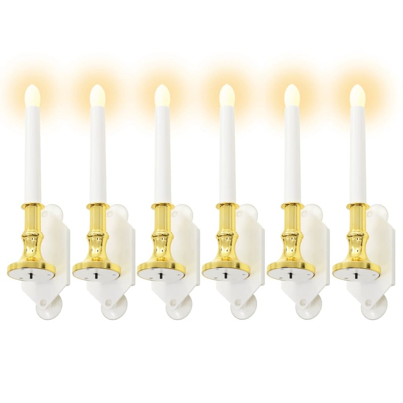 These solar candles are perfect decorative lightings for the windows or walls. Each solar lamp is outfitted with a Ni-MH battery charged by the sunlight. During the day, the candles automatically absorb the sunlight energy and convert it into electricity to charge the battery. There is one LED bead in each candle, which emits bright light in the evening. Thanks to the gel stickers, the candles can be easily attached to the window and create a romantic ambience. Our solar candles are energy saving, and require little maintenance. You do not need to pay the electric bill for the light since it is solar powered. The solar lamps are designed to be water resistant and suitable for daily outdoor use. All items are easy to assemble. Delivery includes 6 solar candles.