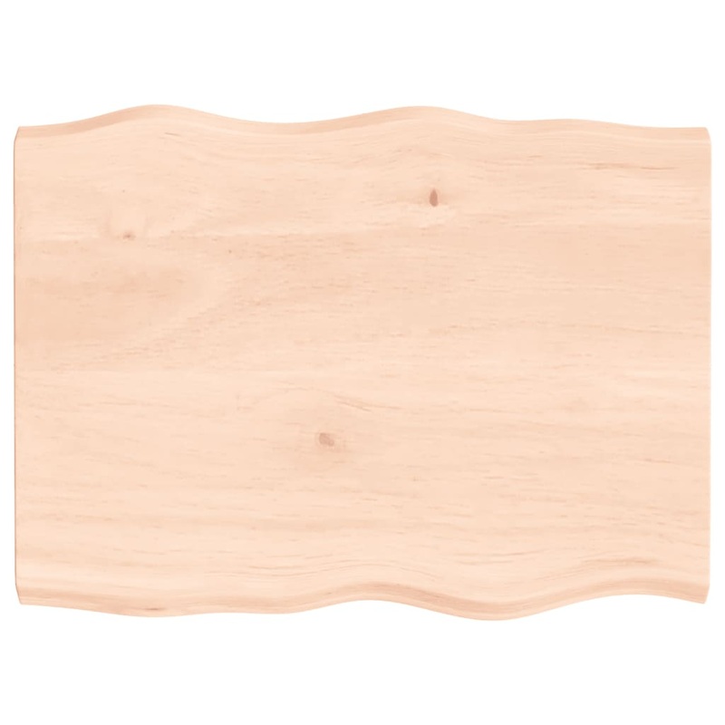 Give a new life to your table with this wooden table top. It is an excellent solution for freshening up your table at home or in a commercial setting. Solid oak wood: The tabletop is made of solid oak wood, which is a beautiful natural material. Oak wood has a medium brown colour and a dense grain, contributing to its unique look.Versatile applications: The replacement table top can be combined with different bases according to your needs.Untreated surface: As the replacement board is crafted from solid oak wood with no finish, you can keep its natural colour but also can paint or lacquer it as per your preference.Handmade with live edge: The DIY board is meticulously handcrafted, showcasing a live edge that adds to its natural charm. Due to that the knots, cracks, slightly curved shapes, and colour tones are part of the oak wood. Every piece has its own unique character to display. The delivery is random, ensuring the exclusivity and individuality of your product.
