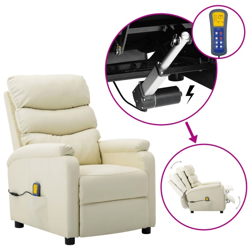 Berkfield Wing Back Electric Massage Reclining Chair Cream Faux Leather
