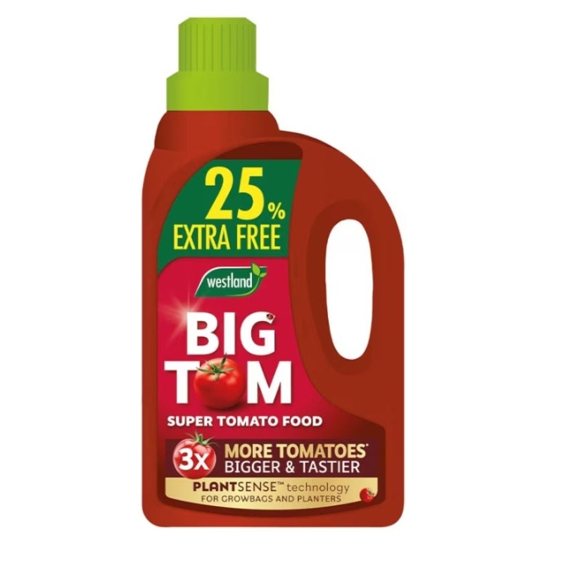 Westland Big Tom Super Tomato Food now gives you 3 x more*, bigger, healthier as well as tastier tomatoes, all season long. Our Big Tom Tomato Food has our unique PlantSense Technology. This means there is just the right amount of nutrients and a water management system perfected to work with peat free growbags and planters. Including iron and magnesium to give you greener plants, it is also rich in seaweed for healthy root growth giving you great tasting tomatoes.
