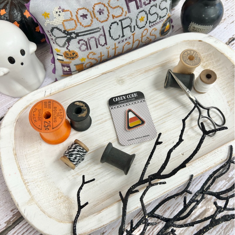 Candy Corn Needle MinderThis Primrose Cottage exclusiveis perfect for all your Halloween Stitching!This needle minder keeps your needle safe and secure during all of your stitching sessions! PCM-006 Designed by Lindsey Weight of Primrose Cottage Enamel Nee