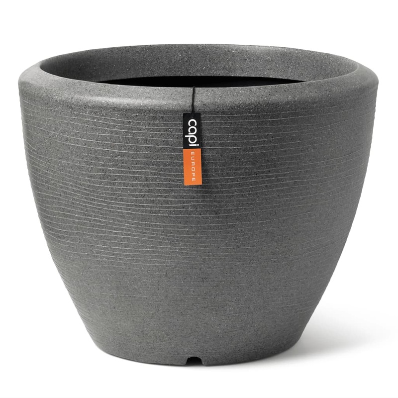 The anthracite 48×35 cm design plant vase from the Capi Arc Granite collection is inspired by contemporary architecture. A combination of luxury and nature are brought together with a playful touch by this stone-looking flower planter. The tapered low flower pot is perfect to combine with other available shapes and sizes within the Capi Arc Granite collection! The featured planters surely add a natural appearance to any indoor and outdoor space. Furthermore, all planters are shatter-proof and 100% recyclable. Despite the robust exterior, the plant vases are lightweight. Thanks to the smooth material the planters are easy to clean what makes them perfect for outdoor use in all weather conditions. TIPS & TRICKS: Before using this design flower planter outdoors, please be sure to drill a drain hole of 25 mm into the bottom for the drainage of water. For a better water management inside the pot, fill the first 1/3 of the pot with hydro granules and your plants will grow better.