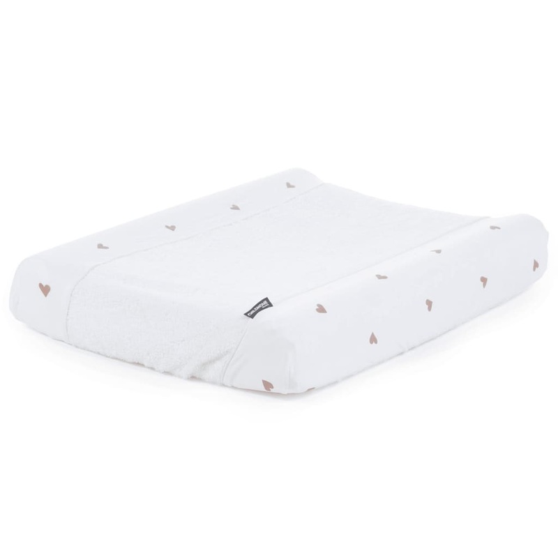 Changing a diaper has never been easier! The beautiful, universal changing cushion cover with ‘Jersey Hearts’ motif from CHILDHOME combines luxurious terry cotton with high-quality jersey. This way your baby will be nice and comfortable while changing. The changing mat cover is made in the middle from white and absorbent terry cotton, while the outside is made of jersey cotton. Note: The changing mat is not included.
