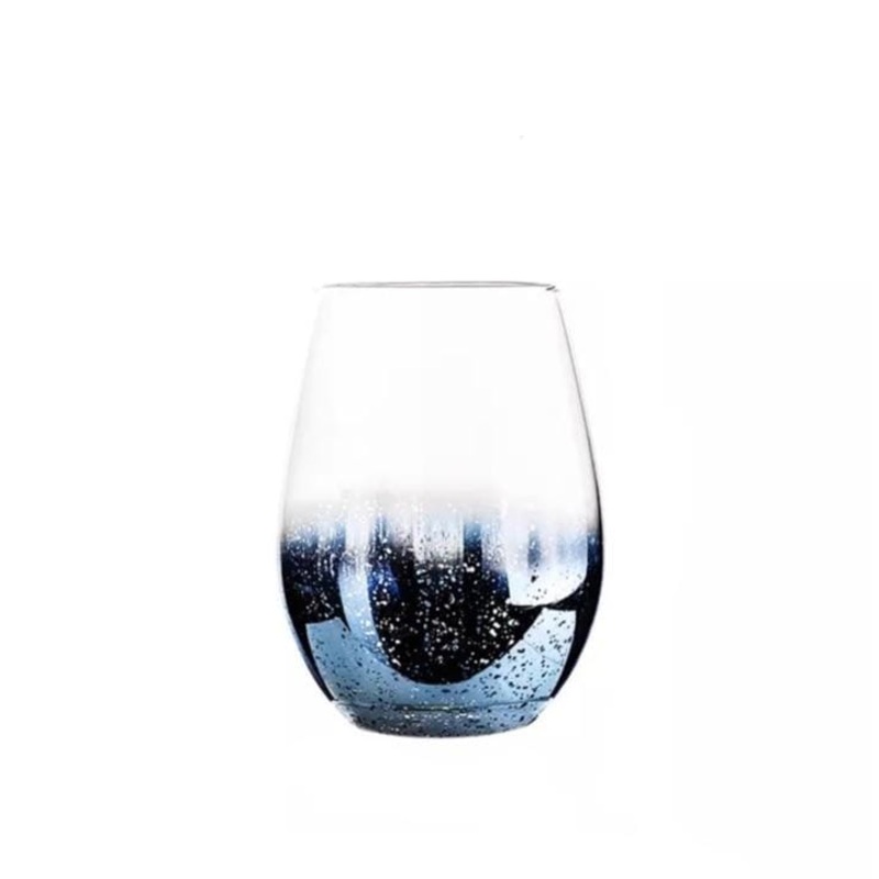 These festive and stylish glasse offer a gorgeous look for serving unique drinks. Following the latest trend for metal blue plating, these tumblers are the height of sophisticated bar chic. Material : borosilicate glass with metal plating Size : H12cm x 8.