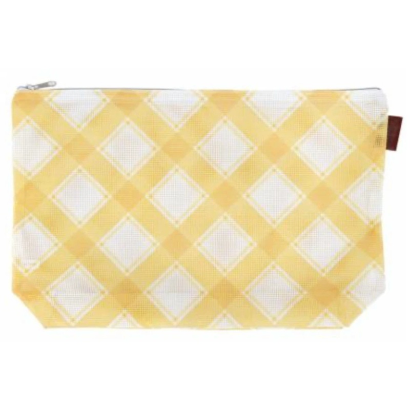 This mesh project bag is adorned with timeless plaid. Our new Mad For Plaid Project Bags are essential for storing works in progress and supplies. You can also stitch on the bag itself to add your own personal touch!Size: Open 3.25 x 10 x 13 Flat 11 x 16"C