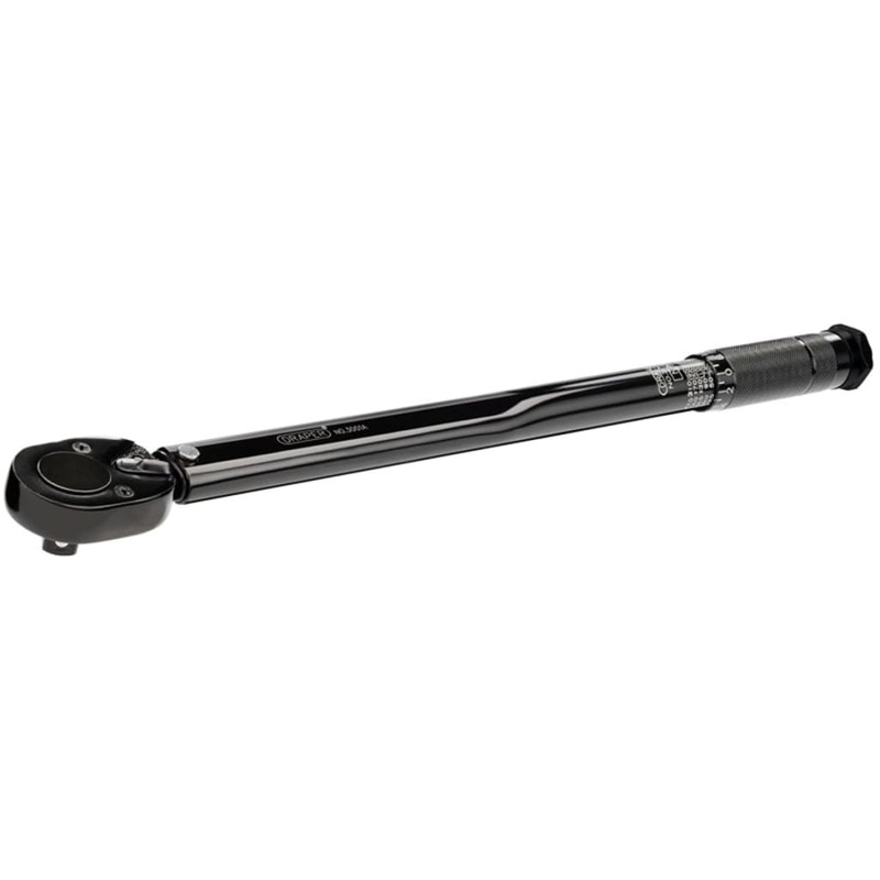 This 1/2” drive torque limiting spanner from Draper Tools will eliminate guessing the required torque and the common tendency to overtighten fasteners. With a reversible ratcheting head, the 1/2” drive torque wrench is simple and easy to use. The in-lb and Nm scale are engraved on the barrel of the wrench and the adjustment sleeve allows for the easily and accurately presetting of torque values. When the preset value is reached, the spanner will audibly click and release the tension. Delivery includes a carrying case.