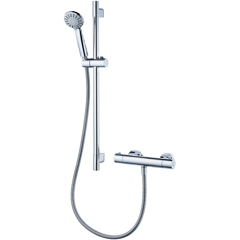 Ecotherm Exposed Thermostatic Bar Shower Valve With Fast Fix Mounting Brackets And Shower Kit, Including Riser Rail, Hose And Shower Handspray. Safety Stop, Limits The Outlet Water Temperature To 38C To Protect Vulnerable Users. Water Saving Removeable Pre
