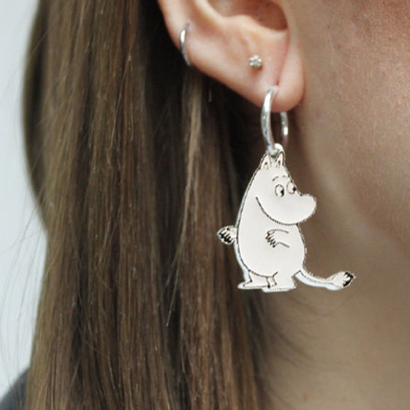These lovely enamel earrings comprise of silver drop hoops, with a Moomin pendant hanging from one, and a Snorkmaiden pendant hanging from the other, and they are guaranteed to make your ears shine! The earrings comes in a beautiful printed box with a die-