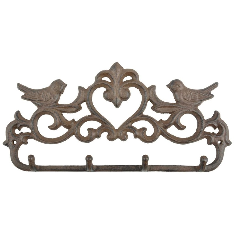 This row of hooks from Esschert Design has been crafted from cast iron using traditional techniques and will make a practical as well as decorative addition to your indoor or outdoor living space. It is adorned with a pair of birds and an ornate pattern an