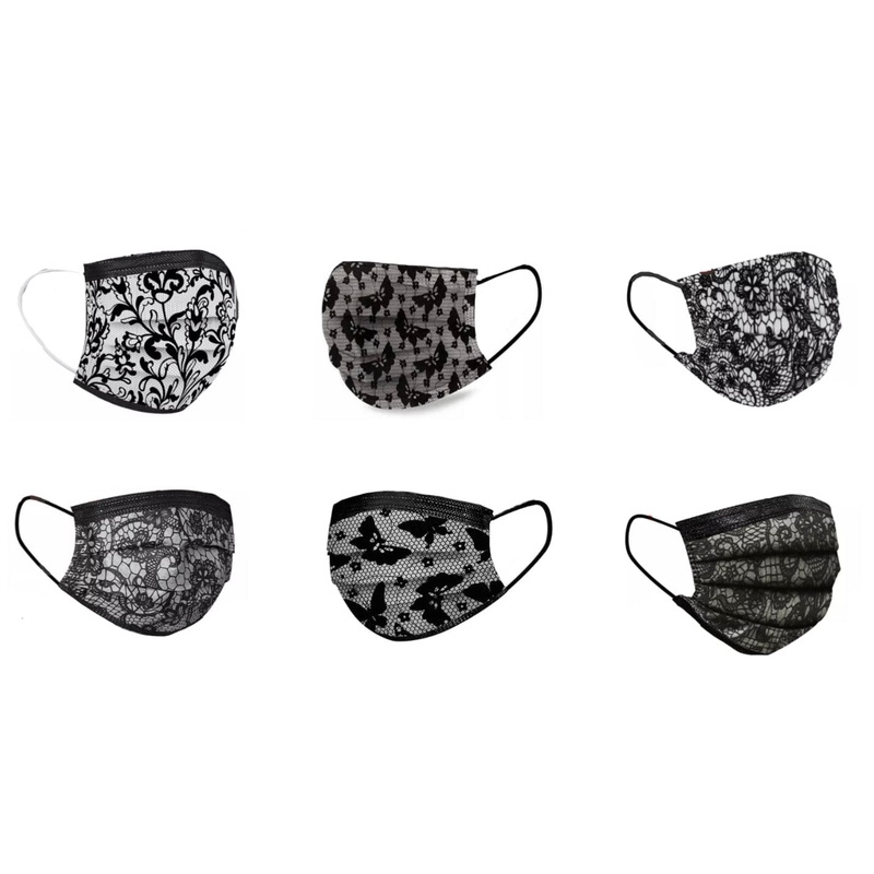 Perfect for a night out, this black Lace face mask is the must for nice dinners at restaurant or intimate dinners with friends. So stay chic, sexy and safe ! Adult size - set of 6 different models Material : polyester - 3 layers ply filter Size : 17.5cm x