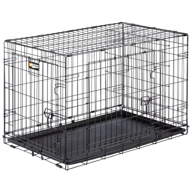 This dog crate Dog-Inn 90 from Ferplast is truly a practical wire cage for raising your puppy. The dog crate helps your puppy to be potty trained and learn to stay alone. This cage includes 2 doors, frontal and side access, for easy entrance/exit. The doors are reinforced with multiple locking points (using a patented system) and a safety latch to ensure maximum reliability at all times. It adapts to the puppy’s growth thanks to the practical partition panel included, which can be moved according to your needs to create the space you require. It is perfectly suited to a range of situations such as house-training your dog, train your puppy at home or transport the pooch by car. This crate, equipped with large wire grids, ensures proper air ventilation and excellent visibility, so you can always keep an eye on your lively four-legged friend. Additionally, the polypropylene bottom tray can be removed, making it easy to clean the pet crate.