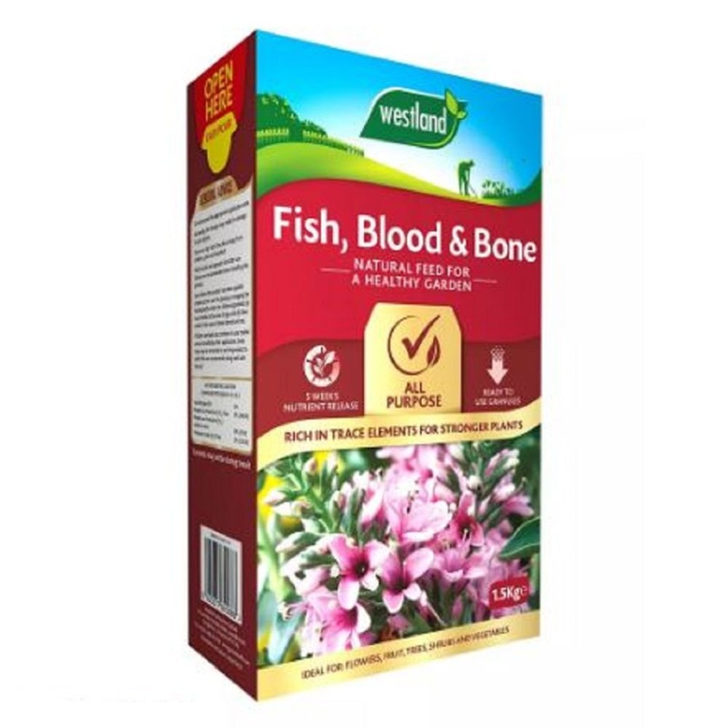 Westland Fish, Blood and Bone is a good natural source of all three of the major nutrients. Nutrients are taken up efficiently due to longer period of release in the soil. Being especially high in phosphorus makes it particularly good for stimulating stron