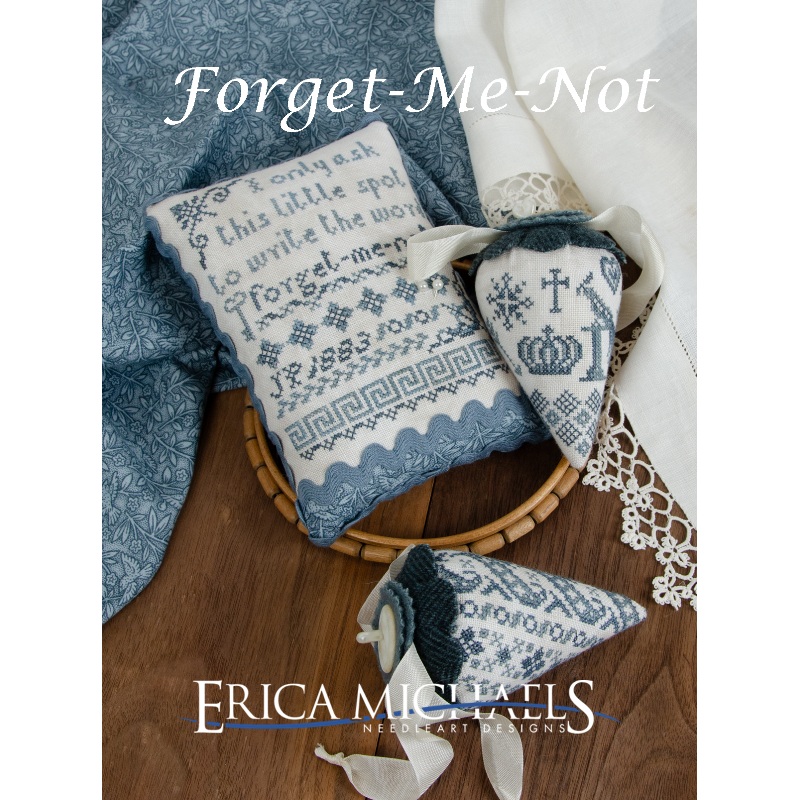 PAPER PATTERN - THIS WILL BE MAILED TO YOU Pattern Name: Forget-Me-Not Designer: Erica Michaels Pin Pillows- Stitch Count: 65 x 83 Berries (each)- Stitch Count: 127 x 72 Stitched On: 36 count Bramble linen fromPicture This Plus Floss: Classic Colorworks- B
