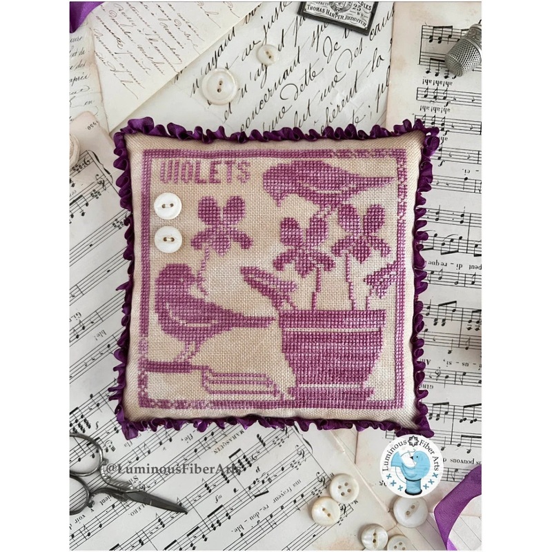 PAPER PATTERN - THIS WILL BE MAILED TO YOUPattern Name: Gathering VioletsDesigner: Luminous Fiber ArtsStitch Count: 76 x 76Stitched on: 32 Count Vintage Country Mocha LinenFloss used: Classic Colorworks