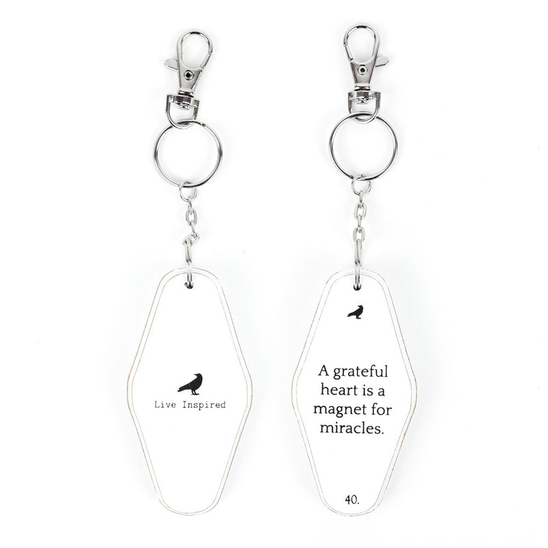 Adams & Co, a trusted name in home and holiday accessories, invites you to live with gratitude and embrace the miracles that surround you. Get inspired and attract positivity with our reversible wood keychain in white and black.