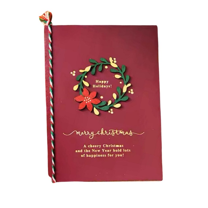 These cute Christmas cards feature beautiful wreath and bauble in 3 D design. 1 envelop included Material : glossy paper card Size : 13cm x 9.5cm