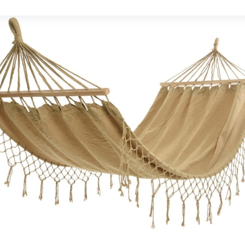 Relax in style with the frayed sand hammock. Ideal for relaxing in your own space, this hammock provides comfort and support while you unwind. Perfect for any outdoor setting, unlock your ultimate relaxation experience. L 100 x W 200cm x H 3cm Sand Colour