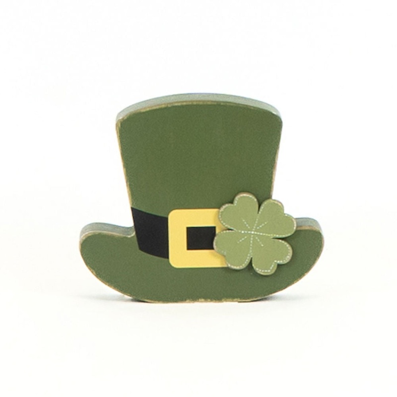 Embrace the magic of fashion with this 5x4x1.25 chunky wood shape. Its stylish "HAT" design in green, yellow, and black exudes a timeless charm that elevates any space with a touch of elegance. The chunky build adds depth and dimension, making it a stand-o