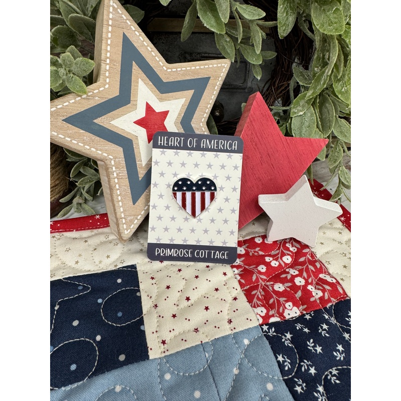 Heart of America Needle Minder This needle minder keeps your needle safe and secure during all of your stitching sessions! Designed by Lindsey Weight of Primrose Cottage Enamel Needle Minder Approximate Size: 1" x .091"