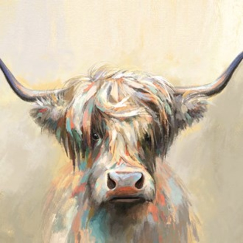 Abstract Effect Multicolour Highland Cow Oil Canvas