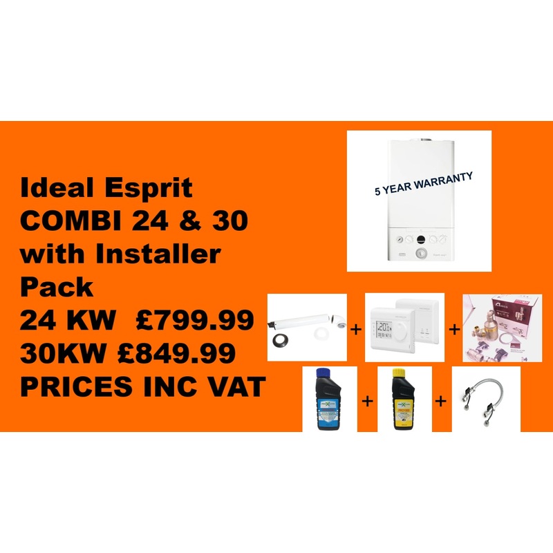 Ideal Esprit Eco2 24kW Combi Boiler+Horizontal Flue+Installer PACK