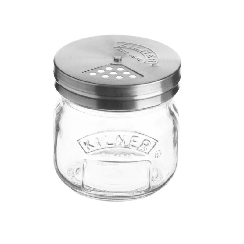 The Kilner 0.25 Litre / 250ml Storage Jar & Shaker is perfect for storing and displaying dried foods, such as chocolate sprinkles, parmesan cheese, cake topping decorations along with herbs and spices. The high quality stainless steel lid has two different sized openings to allow the contents to be easily dispensed. Simply twist the lid to uncover the desired opening.