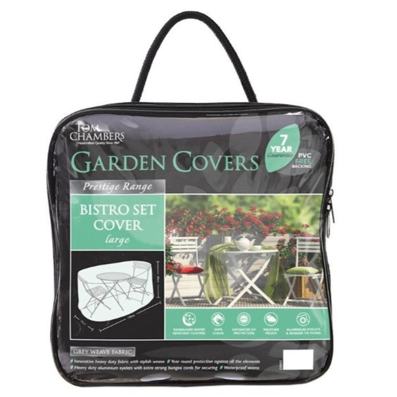 This large bistro set cover is designed with innovative heavy duty fabric with stylish weave that provides year round protection against the elements. As well as being weather proof and having waterproof seams, this cover comes equipt with heavy duty aluminium eyelets and extra strong bungee cords for securing to your bistro set. Ideal for a safe and secure covering year round for your bistro set.