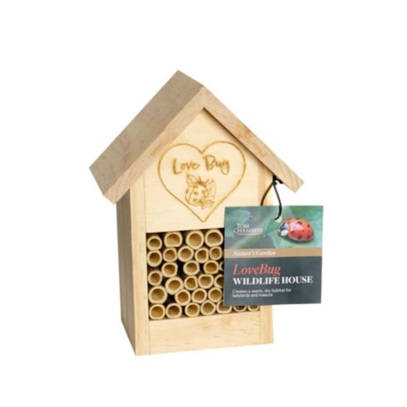 Help to create a warm, dry habitat for ladybirds and insects with the Love Bug Wildlife House. Best to place in a sunny but sheltered position away from prevailing winds and near to flowers and plants. Create a warm, dry habitat for ladybirds and insects M