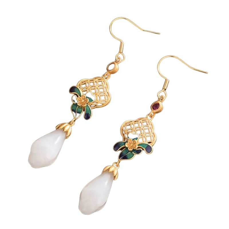 The white and green magnolia Flower with a white hanging stone earring will look fabulous with anything in your wardrobe. Material : metal alloy - enamel - white stone