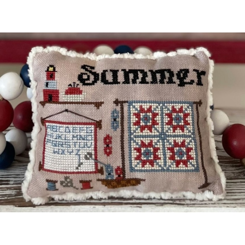 PAPER PATTERN - THIS WILL BE MAILED TO YOU Pattern Name: Needle & Thread Seasons Pillows: Summer Designer: Mani di Donna Stitch Count: 77 x 55 (4 design together with the Border: 172 x 140) Stitched On: 32 count Hand Dyed linen Frog Gray by Mani di Donna F
