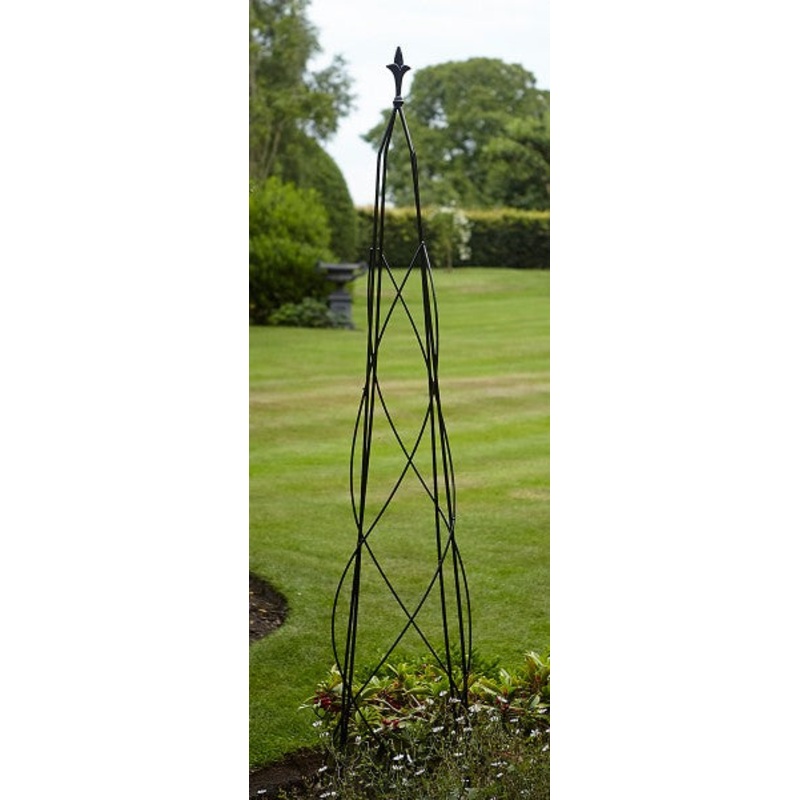Height 1.6m Contemporary spiral design with newfinial Great for use in containers withclimbing plants Hand welded and plastic coated Made in the UK