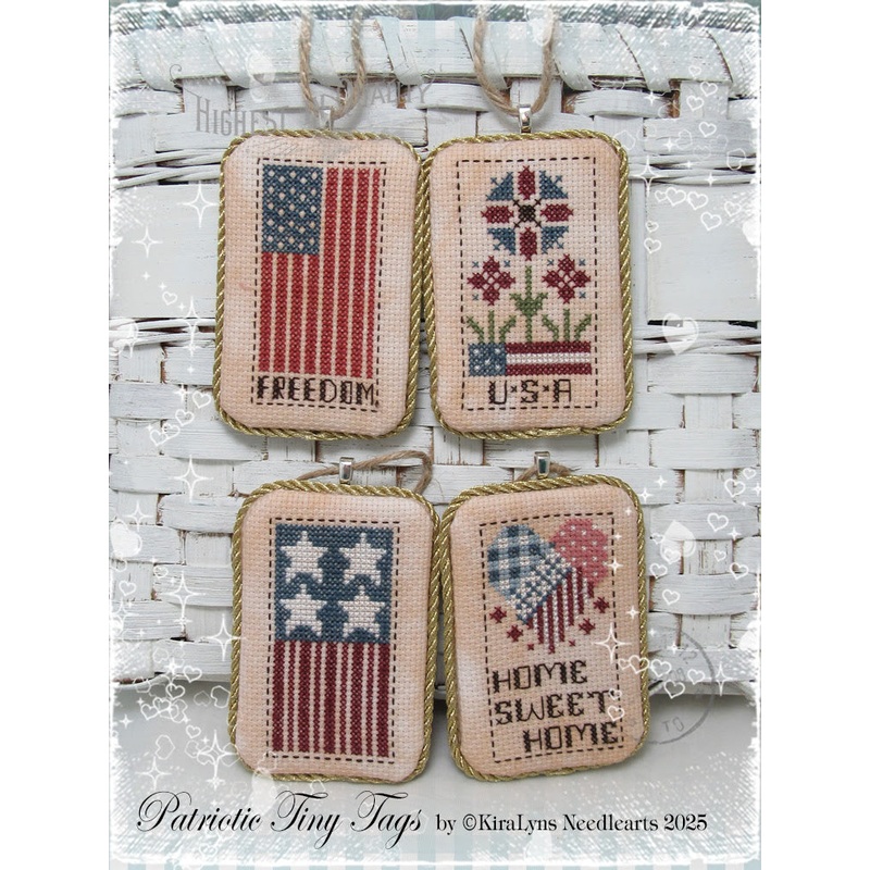 PAPER PATTERN - THIS WILL BE MAILED TO YOUPattern Name: Patriotic Tiny TagsDesigner: Kiralyn's NeedleartsStitch Count: 25 x 45