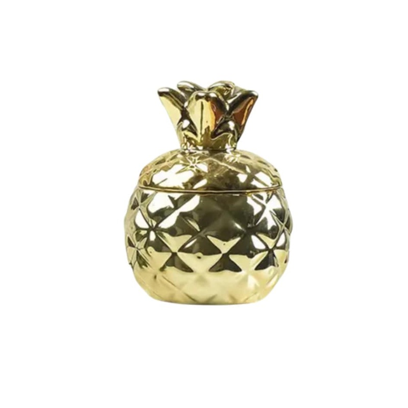 Store your most beloved possessions in this exquisite ceramic Pineapple jar. Its elegant gold finish adds a touch of sophistication to any space, making it the ideal choice for storing your jewelry, sweets, and other small items. Display it on a shelf, con