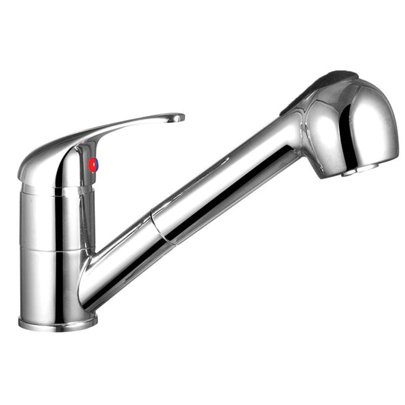 Effortlessly control water flow and temperature with our single lever mixer, featuring a convenient pull-out handle for added versatility. Perfect for any kitchen or bathroom, this product offers seamless operation and a sleek design. Upgrade your space wi
